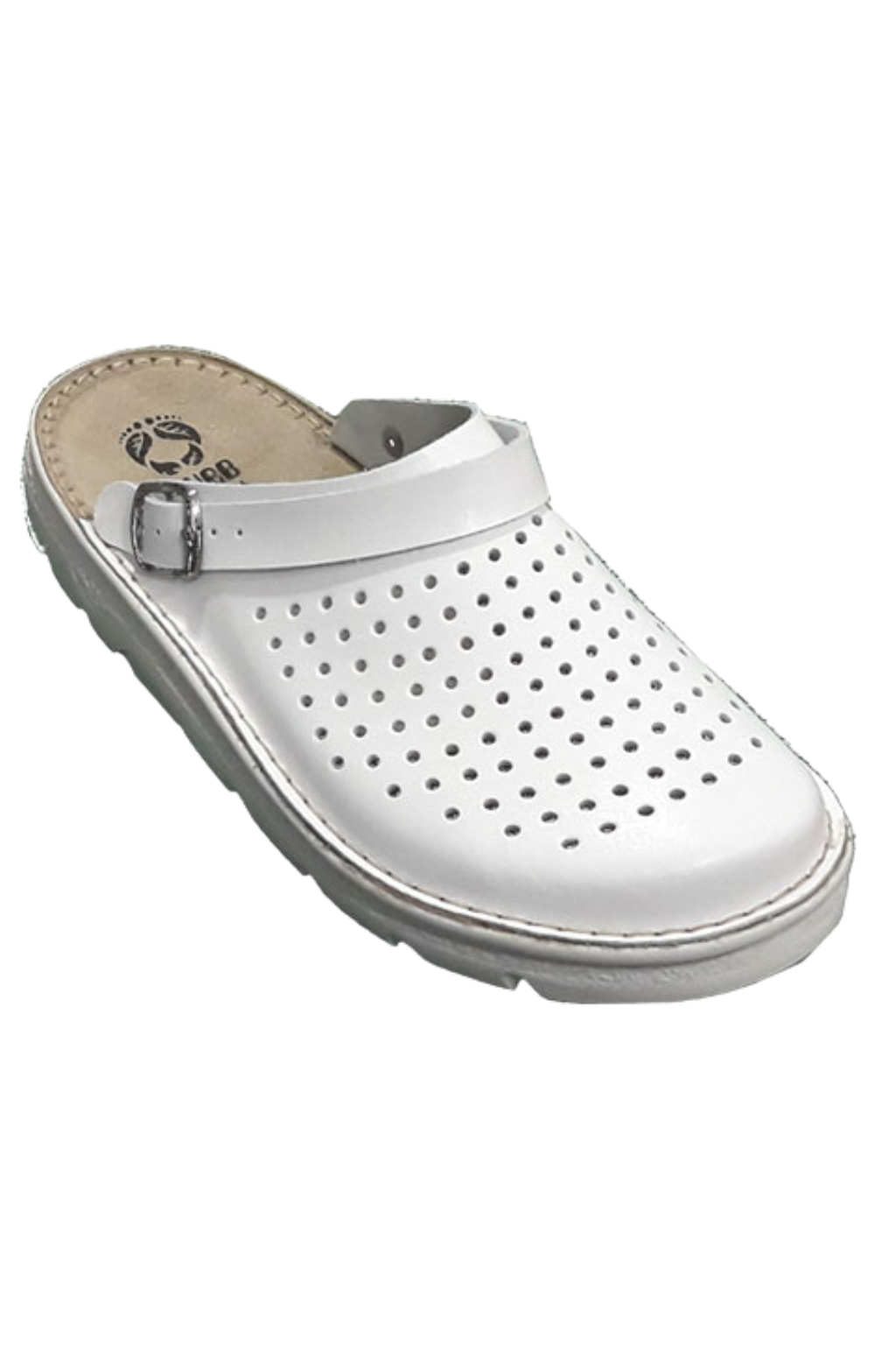 MUBB 30061 muške anatomske klompe bijele s rupicama i podesivim remenom za fiksiranje stopala