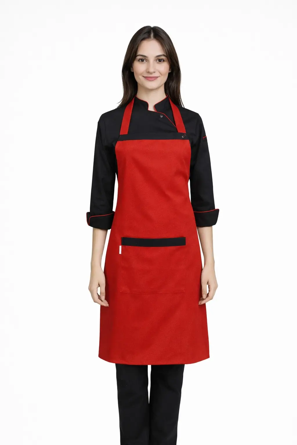 Ženska kuharska pregača Dollar, univerzalna veličina, namijenjena je radu u kuhinji, restoranu ili cateringu. Jednostavan kroj pokriva prednji dio tijela i štiti od mrlja i prskanja tijekom pripreme hrane.