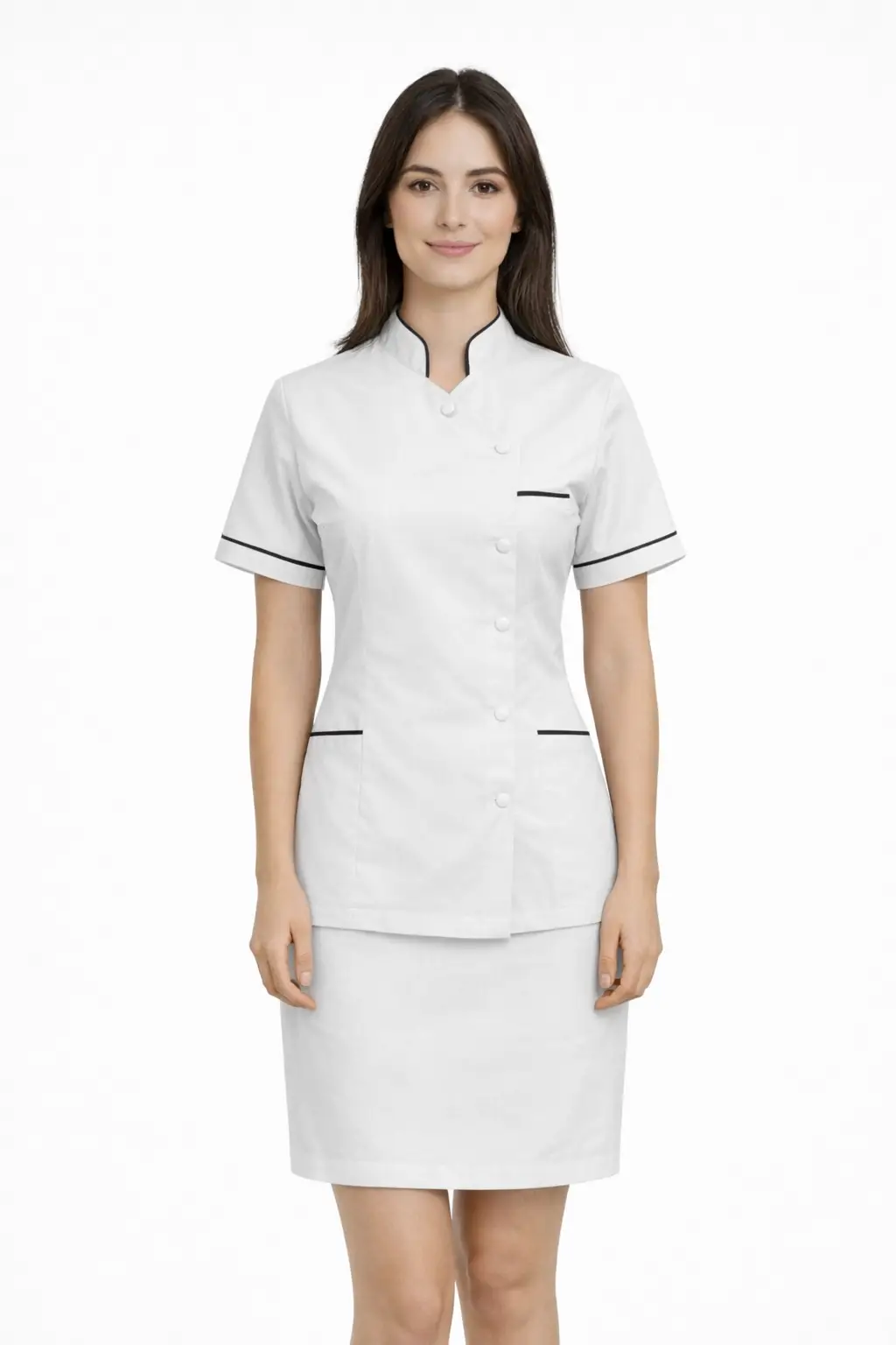 Ženska medicinska bluza s ruskom kragnom izrađena je za svakodnevni rad u ordinacijama, klinikama i salonima. Kroj prati liniju tijela i osigurava uredan, profesionalan izgled tijekom cijelog dana.