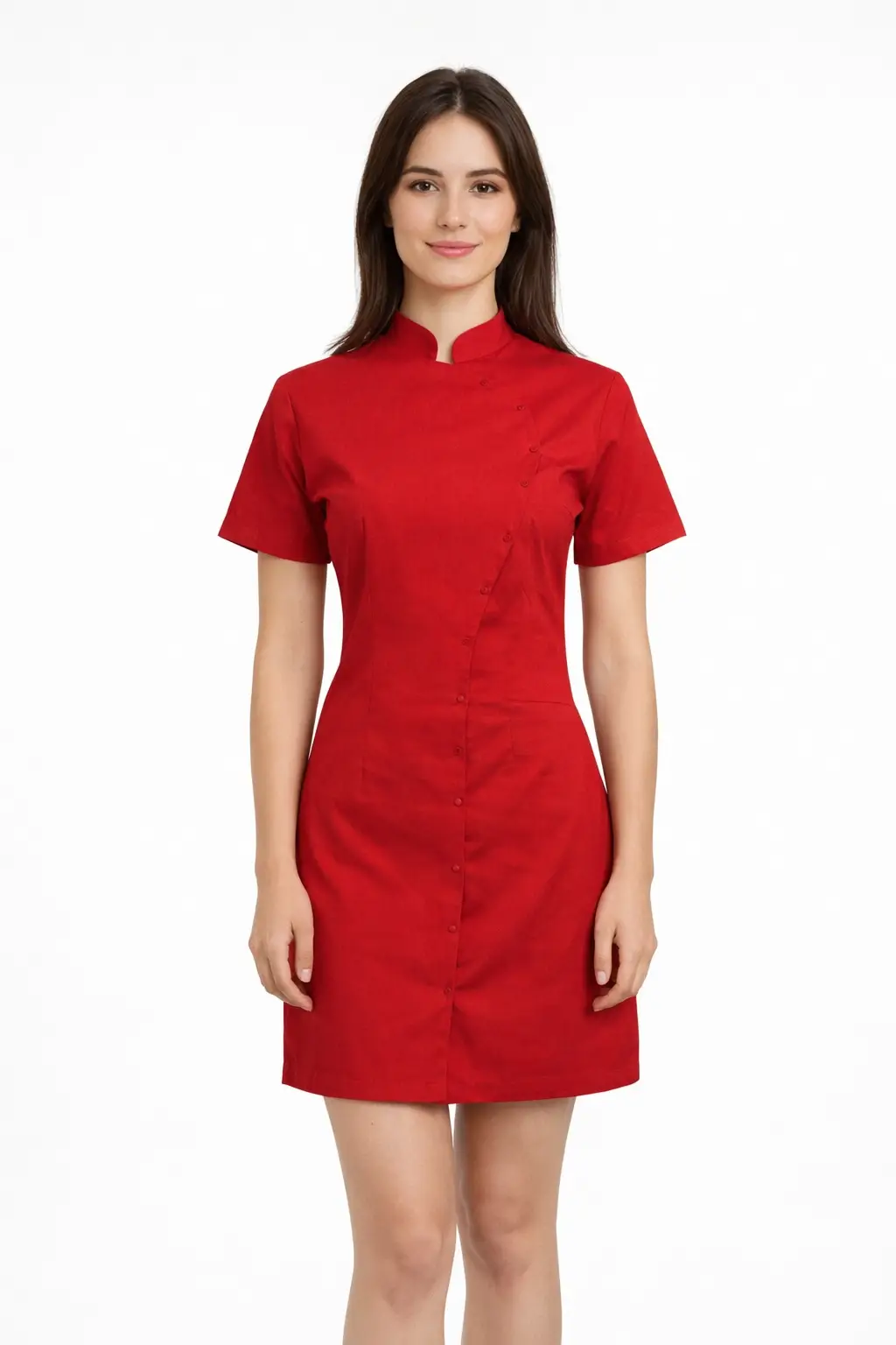Ženska medicinska haljina Tonka praktična je i uredna radna odjeća za svaki dan. Klasičan kroj lijepo prati liniju tijela i omogućuje slobodno kretanje tijekom rada.