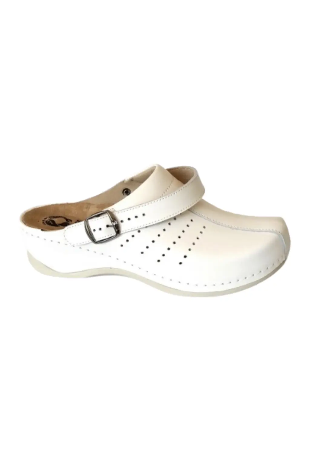 MUBB 739 ženske, bijele anatomske klompe s antibakterijskim uloškom koji se vadi i podesivim remenom